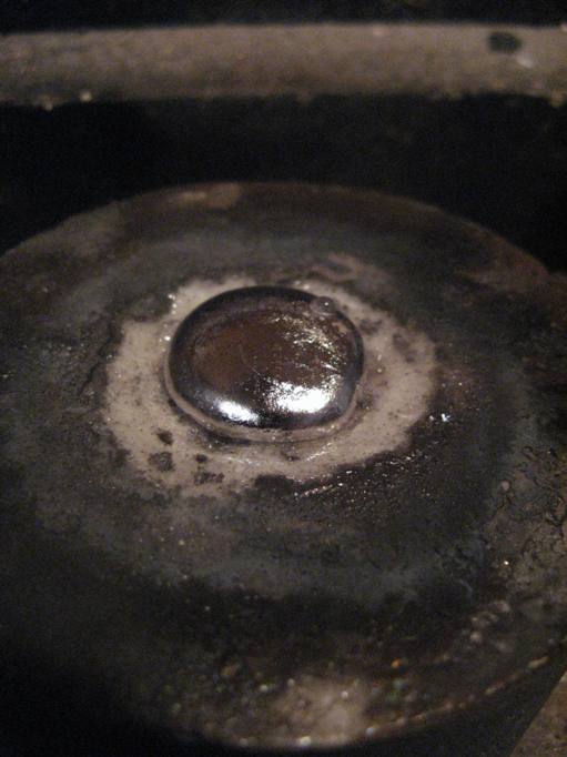 上の3つの写真は解けたプラチナが徐々に冷めていく色の変化。ゆっくりと冷めていく様子が色で分かります。
