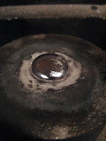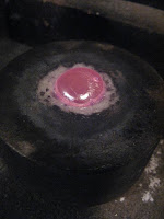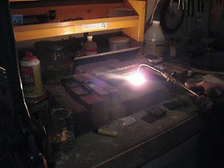 上の写真はプラチナの地金を作る為にバーナーで溶かしているところ。