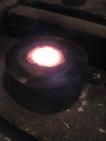 ↑上の写真は溶かした地金をハンマーで叩き延ばしたところ。