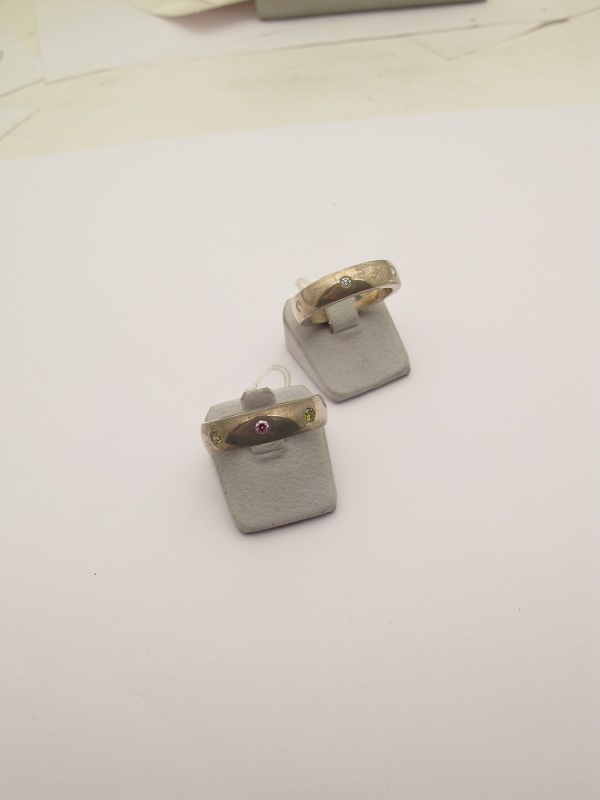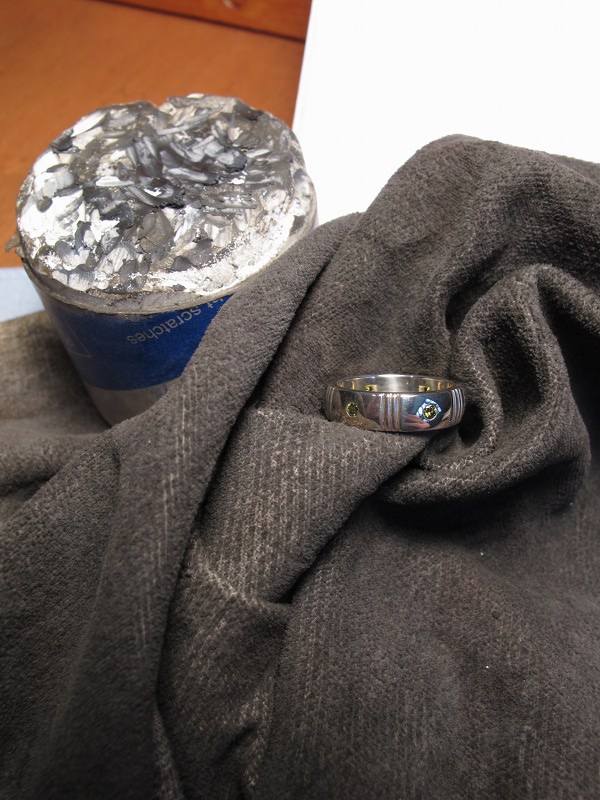 下の写真左はウィンドー内で黄色く変色したリング。右はそれを磨き直したもの。