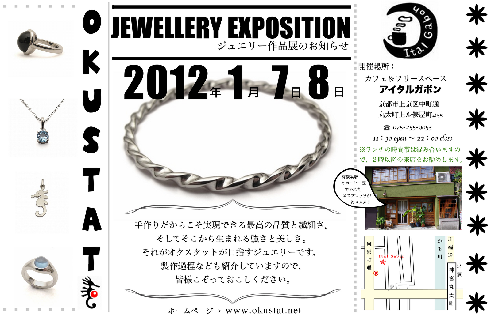 実際にオクスタットのジュエリーを見れるまたとない機会なので、是非みなさまこぞってお越しくださいませ。