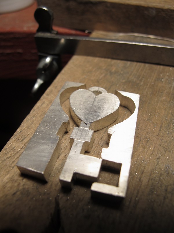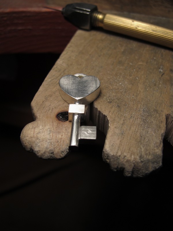 | ハートをヤスリで削りだし、鍵部分も調整。 |
