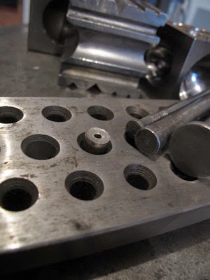 | 正確な直径にする為に、線引き盤を使ってところてんの原理で押し出します(ハンマーで叩きだす) |