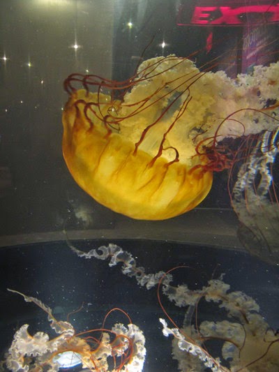 海遊館の中央の水槽が巨大でインパクト大なのに比べて、New Englandの方の中央タンクは小さめで、ギッシリと珊瑚風デコレーションが入っている間をお魚が泳ぎ回っているので、わりと地味です。