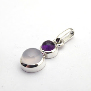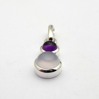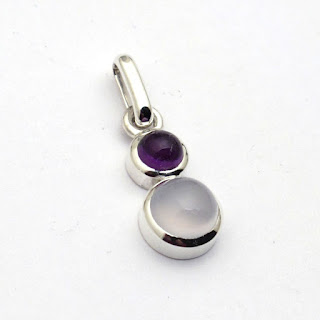 ちょっと抑えめな上品で涼しげな色合いで、アメシストとカルセドニーで。