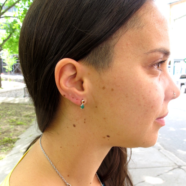 裏側に18Kポストを溶接して、石留め、仕上げ。