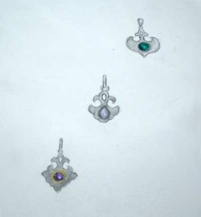 「ジュエリーデザイン」なんてオシャレな響きにはさっぱり縁の無い、ラインとフォルムを鉛筆で気の向くままにいじってみた落書きに過ぎません。