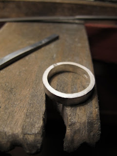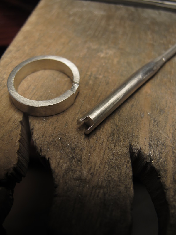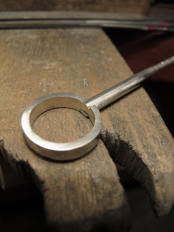 石留めパーツを必要な長さに切って、リング本体にはめ、溶接。