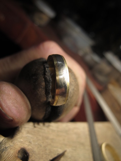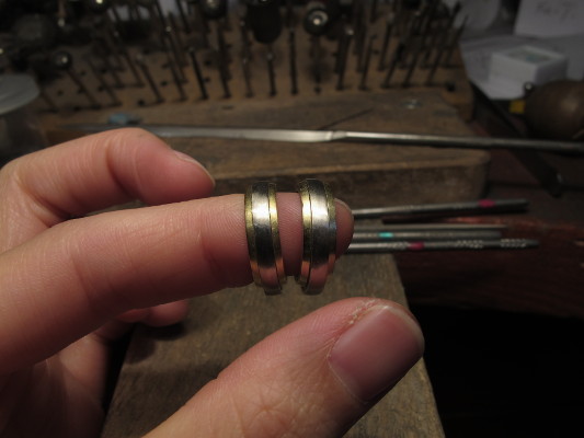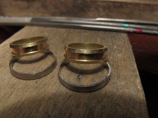 さて、土台となる金のリングにプラチナのリングを埋め込んでいく製法に初めてチャレンジしました。