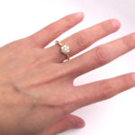 0,08ct(8/100ct)のダイヤを6つの0,05ct(5/100ct)のダイヤでぐるっとお花状に囲んだ上品なモデル。